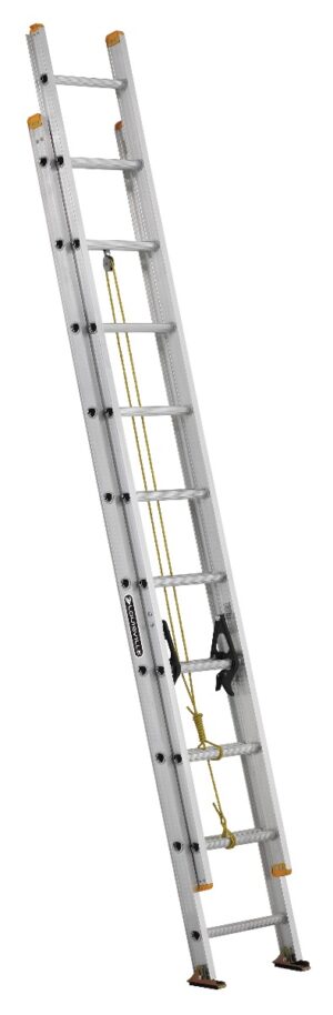 This 20 foot aluminum DEWALT extension ladder has a 225…