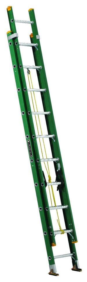 This 20-foot fiberglass DEWALT extension ladder has a 300-pound load…