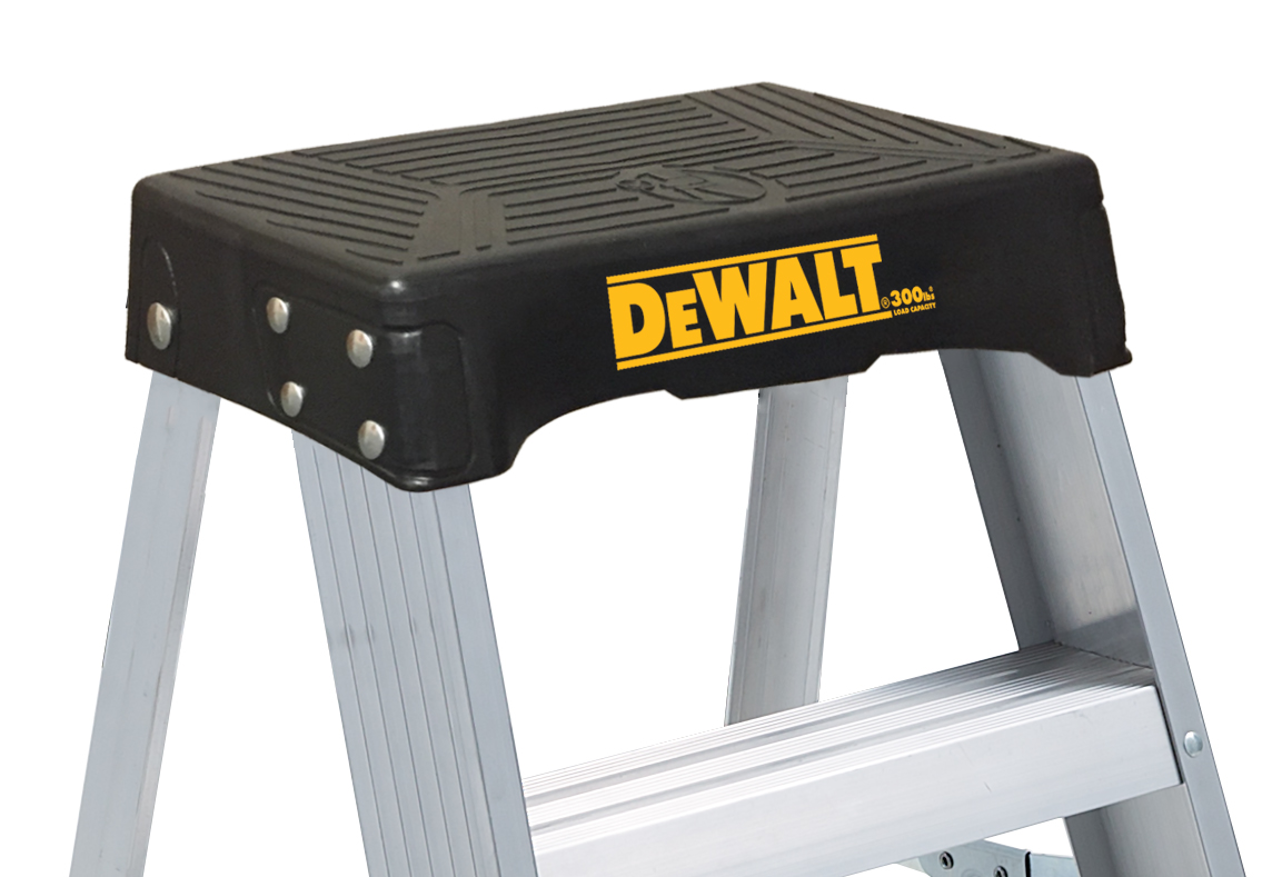 This 2-Foot DeWalt aluminum step stool has a load capacity of 300 lbs, rated ANSI Type IA. This ladder is equipped with a large and flat molded top, slip-resistant aluminum shoes, heavy-duty gusset bracing, and has a 25% greater step surface. This DeWalt DXL2010-02 step ladder meets or exceeds the safety standards set by ANSI, OSHA.