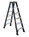 This 4-foot non-conductive DEWALT fiberglass twin front step ladder has a load capacity of 300 lbs, rated ANSI Type IA. The 300 lb load capacity applies to each side of the ladder and is built for use by two people (one per side) simultaneously. This ladder is equipped with an innovative and durable top with magnet and multiple tool slots, heavy-duty boots, an impact absorption system, and has a 25% greater step surface. This DeWalt DXL3030-04 twin step ladder meets or exceeds the safety standards set by ANSI and OSHA.