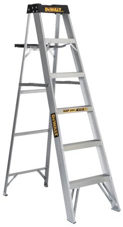 This 6-foot aluminum DEWALT step ladder has a load capacity of 250 lbs, rated ANSI Type I. This ladder is equipped with a durable top with magnet and multiple tool slots, automatic closing pail shelf, slip-resistant aluminum shoes, and heavy-duty gusset bracing. This DeWalt DXL2110-06 step ladder meets or exceeds the safety standards set by ANSI and OSHA.