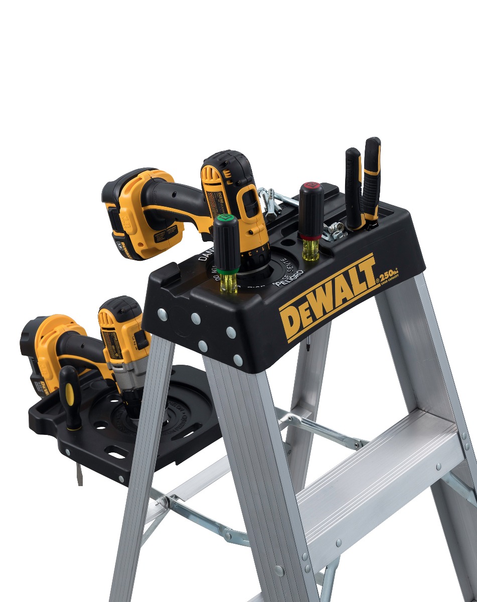 This 6-foot aluminum DEWALT step ladder has a load capacity of 250 lbs, rated ANSI Type I. This ladder is equipped with a durable top with magnet and multiple tool slots, automatic closing pail shelf, slip-resistant aluminum shoes, and heavy-duty gusset bracing. This DeWalt DXL2110-06 step ladder meets or exceeds the safety standards set by ANSI and OSHA.