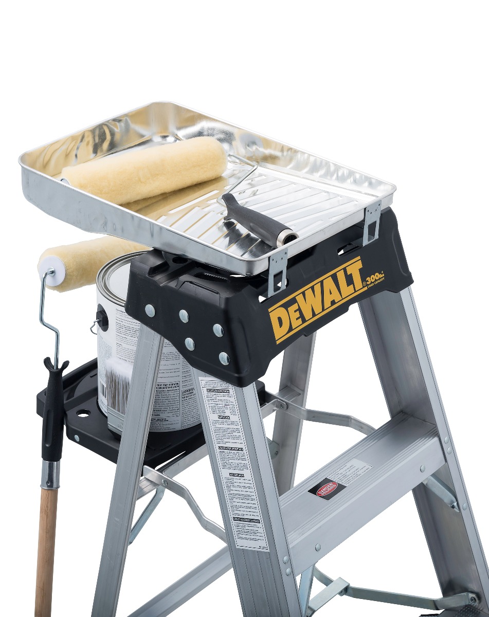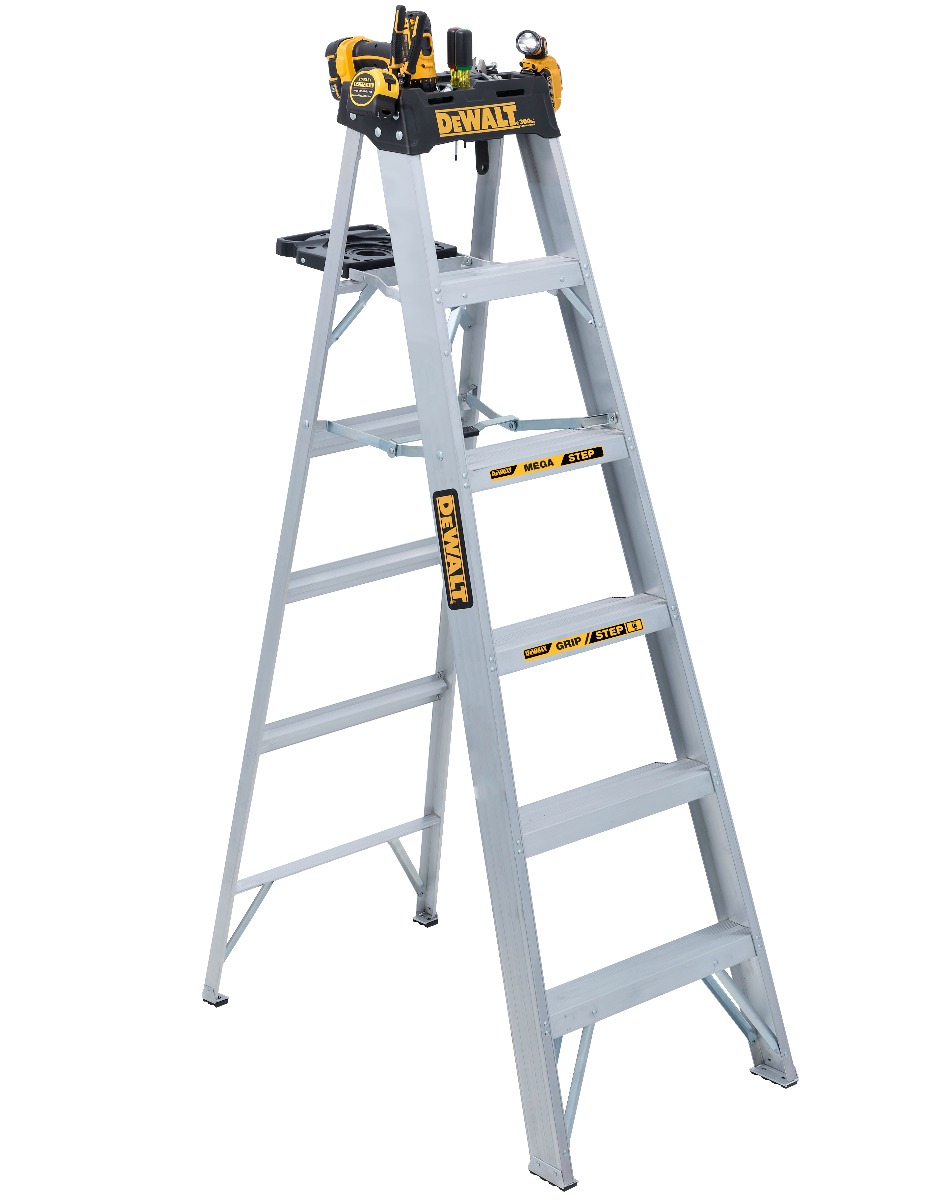 This 8-foot DEWALT aluminum step ladder has a load capacity of 300 lbs, rated ANSI Type IA. This ladder is equipped with a durable top with magnet and multiple tool slots, automatic closing pail shelf, slip-resistant aluminum shoes, heavy-duty gusset bracing, and has a 25% greater step surface. This DeWalt DXL2010-08 step ladder meets or exceeds the safety standards set by ANSI and OSHA.