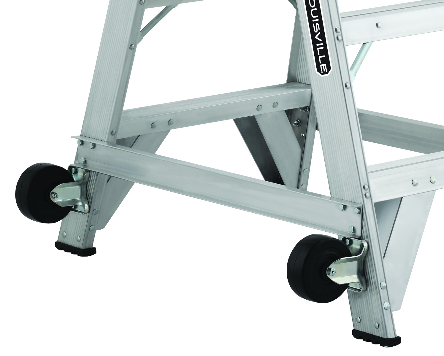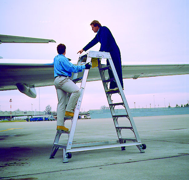 This Louisville 12 foot heavy-duty aluminum aircraft mechanic ladder has a 300lb load capacity, ANSI Type IA. This ladder is designed and created specifically for the aircraft maintenance industry. It’s durable design and premium construction along with its slip-resistant rubber feet, extra-large top platform, tilt and roll feature, and double-rivet step construction make it a convenient and work efficient ladder. The Louisville AM8012 aircraft mechanic ladder meets or exceeds the safety standards set by ANSI and OSHA.