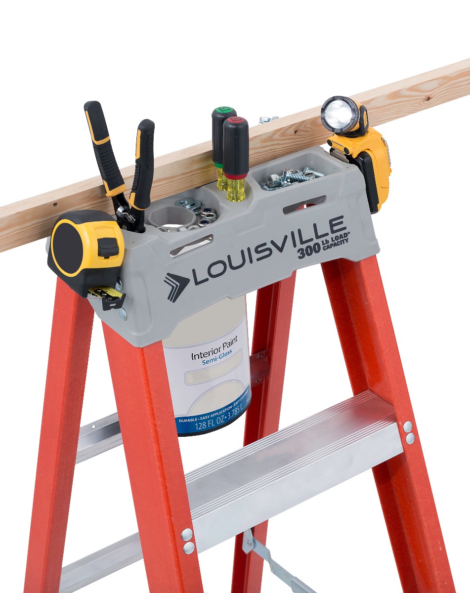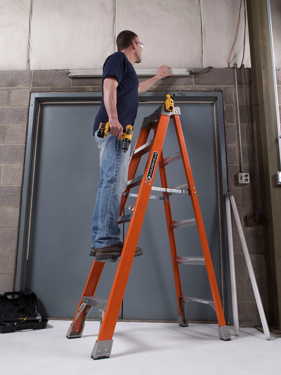 This Louisville 12 foot non-conductive fiberglass step ladder has a load capacity of 300lbs, rated ANSI Type IA. This ladder is equipped with the new and innovative Raptor Top with magnet and multiple tool slots, SHOX impact absorption system, new Raptor boots with non-marring bonded tread mechanically fastened to the upper boot to create a secure slip-resistant footing, inside spreader braces, wide back braces, and double-rivet step construction. The Louisville FS1512 step ladder meets or exceeds the safety standards set by ANSI and OSHA.