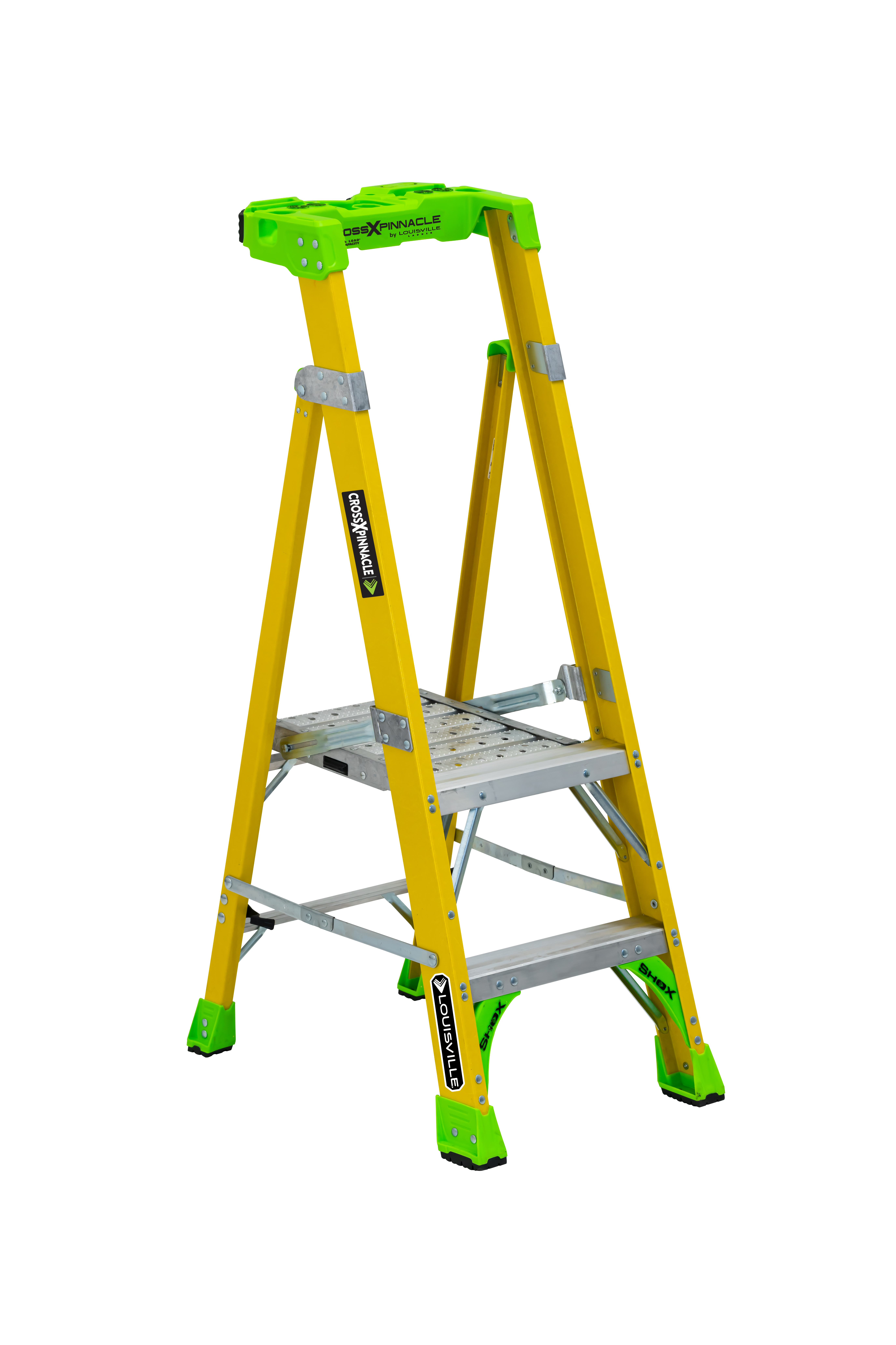 LOUISVILLE LADDER 2-FOOT FIBERGLASS CROSS PINNACLE PLATFORM AND LEANING STEP LADDER, FCP1402HD