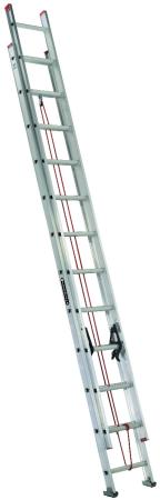 This Louisville 24 foot aluminum extension ladder has a 200 pound load capacity, rated ANSI Type III. This ladder is equipped with D-shape rungs fully serrated for a slip resistant surface, aluminum runglock, mar resistant rail end caps, rope and pulley, and slip-resistant rubber feet. The Louisville L-2324-24 aluminum extension ladder meets or exceeds the safety standards set by ANSI and OSHA.