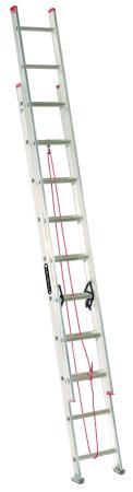 This Louisville 20 foot aluminum extension ladder has a 200 pound load capacity, rated ANSI Type III. This ladder is equipped with D-shape rungs fully serrated for a slip resistant surface, aluminum runglock, mar resistant rail end caps, rope and pulley, and slip-resistant rubber feet. The Louisville L-2324-20 aluminum extension ladder meets or exceeds the safety standards set by ANSI and OSHA.