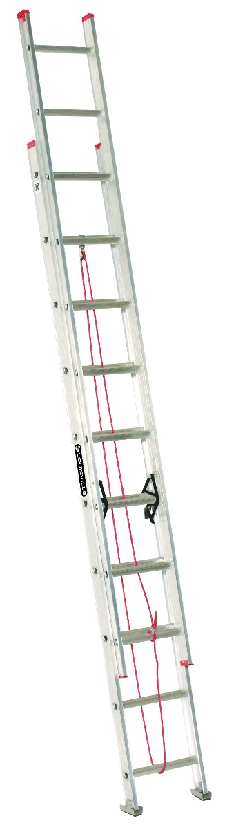 This Louisville 20 foot aluminum extension ladder has a 200 pound load capacity, rated ANSI Type III. This ladder is equipped with D-shape rungs fully serrated for a slip resistant surface, aluminum runglock, mar resistant rail end caps, rope and pulley, and slip-resistant rubber feet. The Louisville L-2324-20 aluminum extension ladder meets or exceeds the safety standards set by ANSI and OSHA.