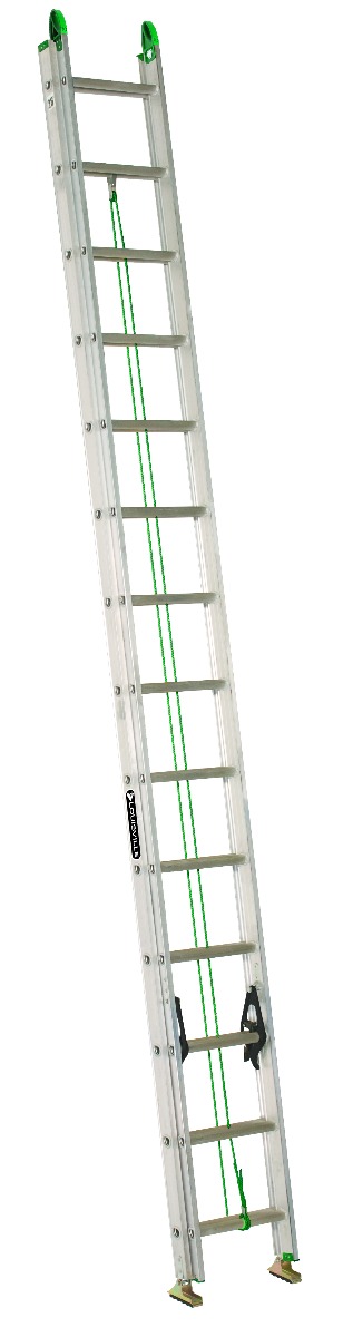This Louisville 28-foot aluminum extension ladder has a 225 lb load capacity, rated ANSI Type II duty rating. It is equipped with the MAXLOCK rung lock, custom engineered from a patented, advanced molecular polymer, MAXLOCK is the strongest, toughest, lightest rung lock ever made. This ladder also includes the patented ProGrip slip resistant tread integrated onto the ladder caps to protect the work surface from damage. QuickLatch RungLock system that provides a simple, intuitive method of securing the fly and base sections of the ladder when extended. This ladder also features outside slide guides, D-shape rungs fully serrated for a slip resistant surface, rope and pulley, modified I-beam for a more stable connection and to prevent twisting, and swivel safety shoes to be used as tread down or in spike position. The Louisville AE4228PG aluminum extension ladder meets or exceeds the safety standards set by ANSI and OSHA.