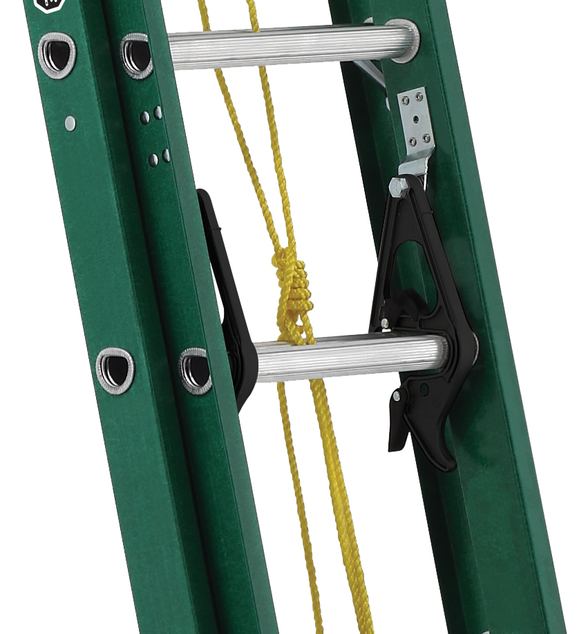 This Louisville 28 foot fiberglass extension ladder has a 225lb load capacity, rated ANSI Type II. It is equipped with the MAXLOCK rung lock, custom engineered from a patented, advanced molecular polymer, MAXLOCK is the strongest, toughest, lightest rung lock ever made. This ladder includes the patented QuickLatch RungLock system that provides a simple, intuitive method of securing the fly and base sections of the ladder when extended. The ladder features outside slide guides, D-shaped rungs fully serrated for a slip resistant surface, non-marring rail end caps, rope and pulley, and steel swivel safety shoes with metal shield to be used with the tread down or in spike position. The Louisville FE0628 fiberglass extension ladder meets or exceeds the safety standards set by ANSI and OSHA.