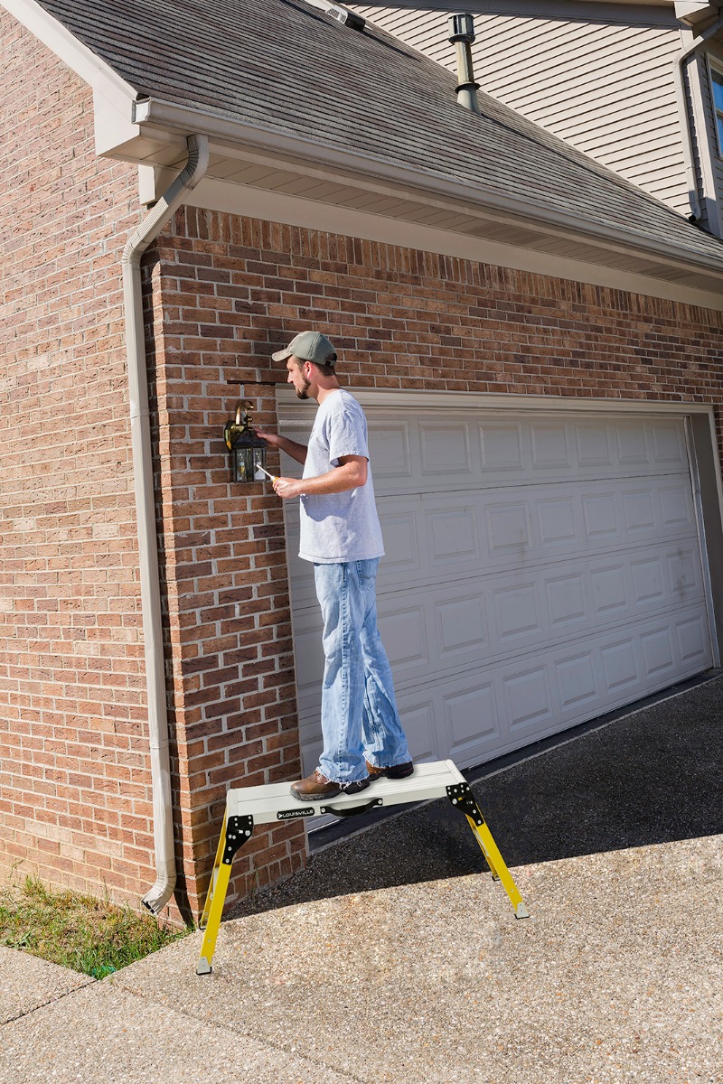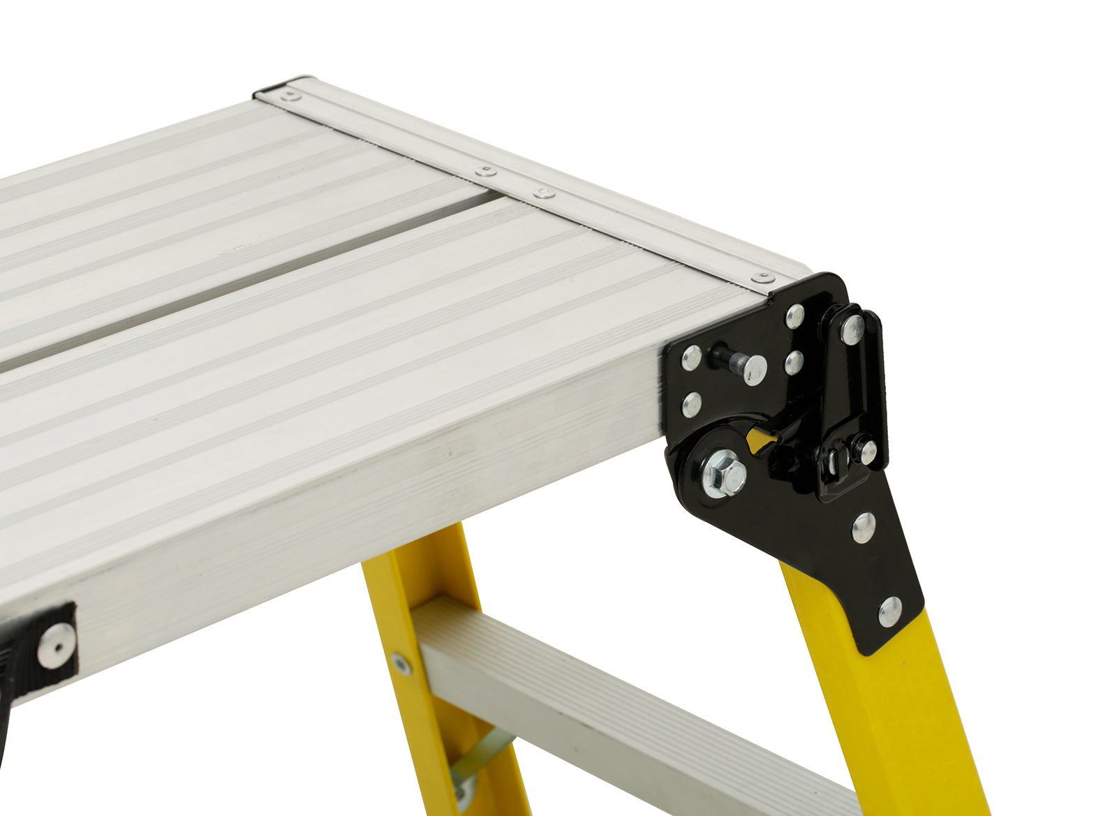 This Louisville 3-Foot non-conductive fiberglass mini working platform has a load capacity of 300lbs, rated ANSI Type IA. It features a 12″ wide slip-resistant standing area, slip-resistant rubber feet, durable fiberglass rails, and easy-use locking hinge. Ideal for tasks that require standing for extended periods of time and some movement.