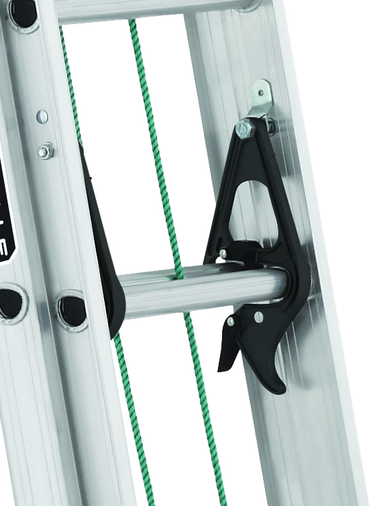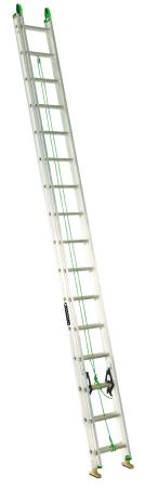 This Louisville 32-foot aluminum extension ladder has a 225 lb load capacity, rated ANSI Type II duty rating. It is equipped with the MAXLOCK rung lock, custom engineered from a patented, advanced molecular polymer, MAXLOCK is the strongest, toughest, lightest rung lock ever made. This ladder also includes the patented ProGrip slip resistant tread integrated onto the ladder caps to protect the work surface from damage. QuickLatch RungLock system that provides a simple, intuitive method of securing the fly and base sections of the ladder when extended. This ladder also features outside slide guides, D-shape rungs fully serrated for a slip resistant surface, rope and pulley, modified I-beam for a more stable connection and to prevent twisting, and swivel safety shoes to be used as tread down or in spike position. The Louisville AE4232PG aluminum extension ladder meets or exceeds the safety standards set by ANSI and OSHA.