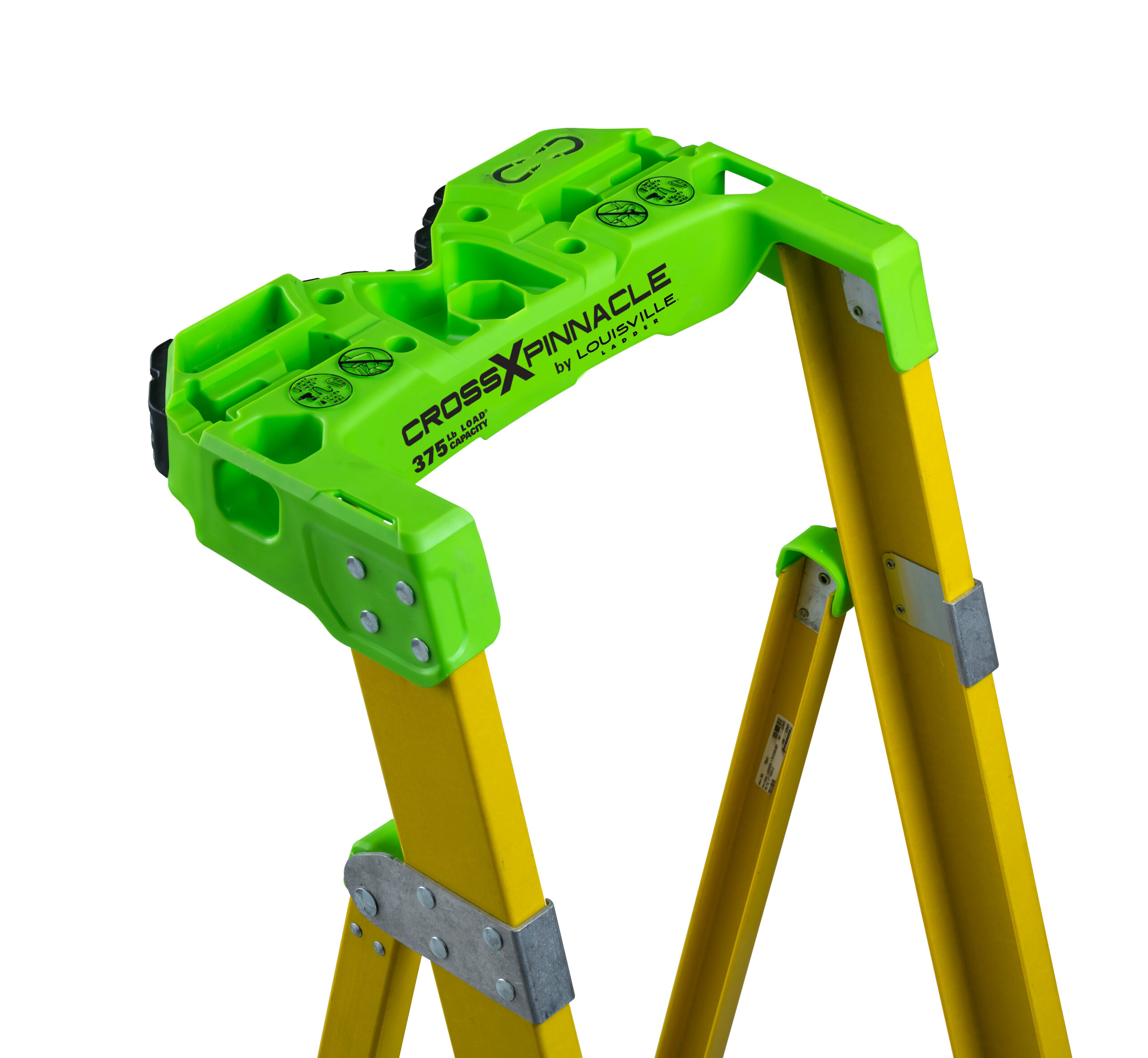 This innovation is the first of its kind. Combining the sturdiness of a platform ladder with the ability to be leaned, this Platform to Leaning 2-in-1 Cross Pinnacle Ladder is a job site must-have. Its HiVis green top and shoes make it easily identifiable to prevent fines and improve workplace safety. This 4-Foot Leaning Platform Ladder is made of superior quality and is non-conductive. The V-shape Pro Top allows the ladder to lean against walls, buildings and poles, and onto and into corners, giving it plenty of ways to improve performance when working electrical, construction, and residential jobs. The top includes a magnet tray, hardware tray, drill and tool slots, and pipe or 2×4 holder, and two tool tether anchor attachment points to secure tools with a lanyard. Louisville Ladder’s exclusive SHOX system provides extra durability and resistance to abuse and accidental mishandling; it has a 375-Pound capacity, elegant design, and a smooth finish. You won’t find a more durable, reliable ladder. As with all Louisville Ladders, it meets or exceeds the safety standards set by ANSI and OSHA.