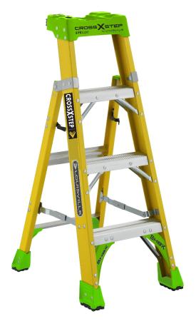 The industry changing Step-to-Extension 2-in-1 Cross Step Ladder is better than ever! Its HiVis green top and shoes makes it easily identifiable to prevent fines and improve workplace safety. SUPERIOR SAFETY: This 4-Foot Cross-Step/Shelf Ladder is made of superior quality, non-conductive fiberglass VERSATILE: Converts from a step ladder into a shelf ladder for a 2 in 1 combination in order to get closer to the work area PATENTED PRO-TOP SYSTEM: V-shape Pro Top allows the ladder to lean against walls, buildings and poles; and has plenty of features to improve performance when working electrical, construction, and residential jobs. It includes a magnet tray, hardware tray, drill and tool slots, and pipe or 2×4 holder. EQUIPPED WITH SHOX SYSTEM: Louisville Ladder exclusive SHOX system provides extra durability and resistance to abuse and accidental mishandling. STURDY AND STRONG: With its 375-Pound capacity, elegant design and smooth finish, you won’t find a more durable, reliable ladder. ABOVE AND BEYOND SAFETY STANDARDS: This ladder meets or exceeds the safety standards set by ANSI and OSHA.