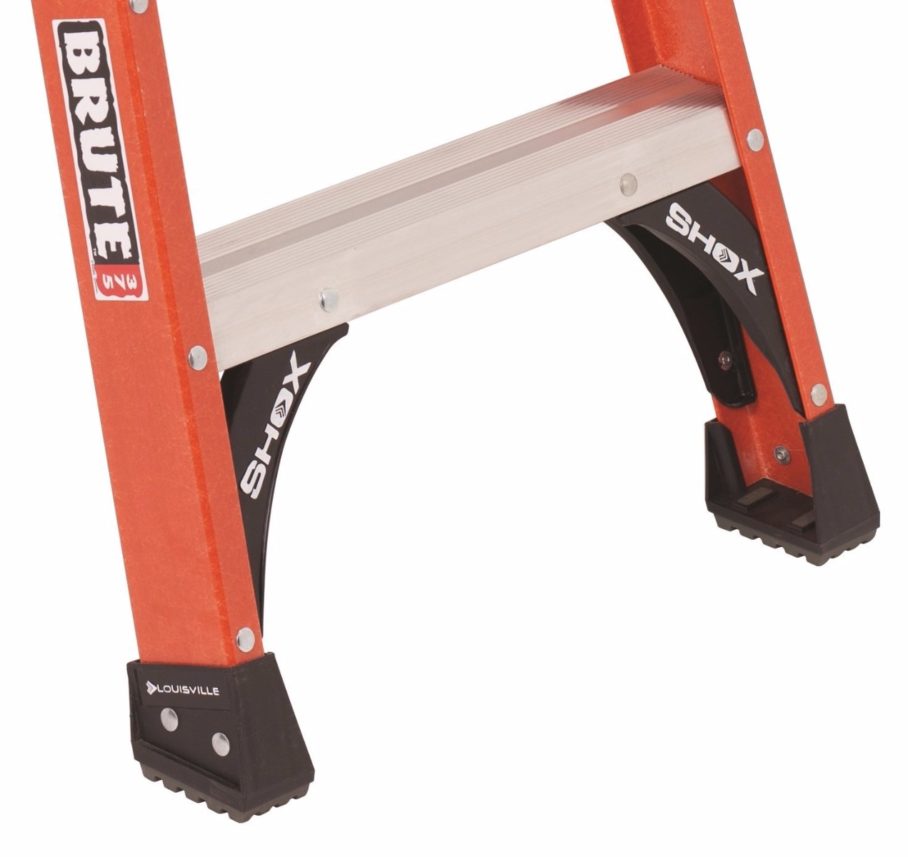 This Louisville 4 foot non-conductive fiberglass industrial twin front step ladder has a load capacity of 375lbs, rated ANSI Type IAA. This ladder is equipped with DaBoot with non-marring bonded tread mechanically fastened to the upper boot to create a secure slip-resistant footing, SHOX impact absorption system, heavy-gauge steel hinges, heavy-duty gusset bracing, inside spreader braces, and riveted step construction. Twin front step ladders allow two users to work on the same ladder simultaneously to easily accomplish tasks that would be more difficult for a single person. The Louisville FM1404HD twin front step ladder meets or exceeds the safety standards set by ANSI and OSHA.