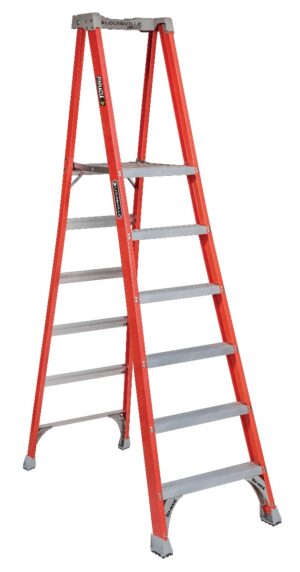 LOUISVILLE LADDER 8-FOOT FIBERGLASS PINNACLE PRO PLATFORM PLATFORM LADDER, TYPE IA, 300-POUND LOAD CAPACITY, FXP1708